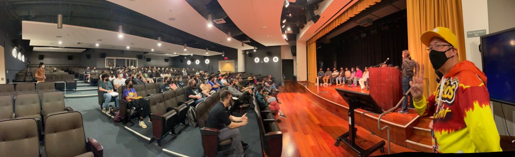 Yay! The SHM Con of 2022, which happened in April 23rd of 2022, was the perfect venue for SHM Film Collective super special screening of all the SHM short films completed in 2020 and 2021. 14 films!!!! We hosted the 2 hours long event at the Student Union Theater, and after the screening we hosted a super awesome Q&A with the filmmakers!!!Even though everybody was wiped out after several hours of SHM Con, all the seats were taken and the theater was completely full. In the audience, SHM faculty, alumni, current students and their families were offered a great treat: films with amazing stories, told in all kinds of different visual styles.